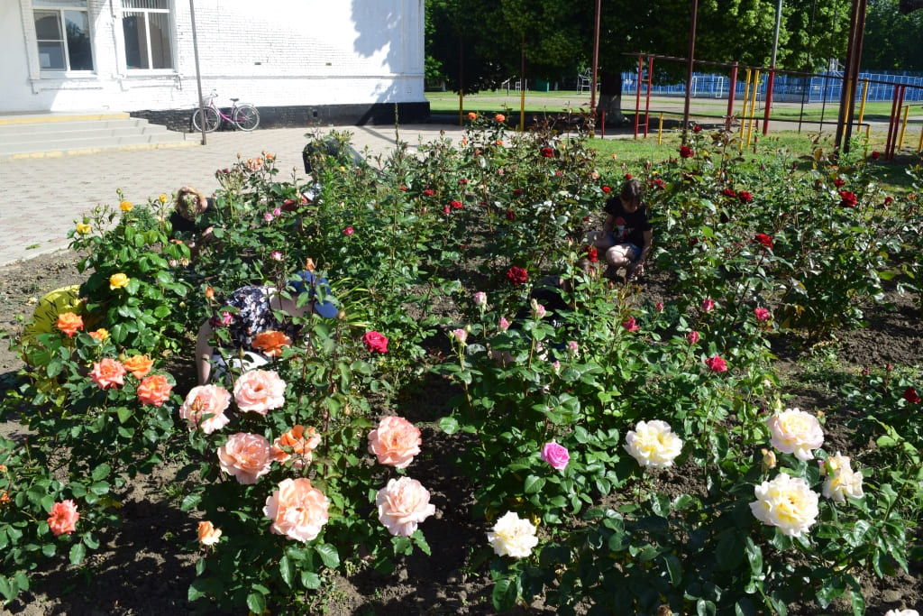 2 июня ребята очистили школьный розарий от сорняков, и теперь королевское соцветие роз как будто ещё сильнее заблагоухало, даря всем свой прекрасный аромат.