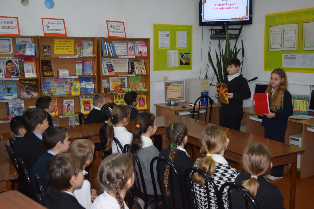 К памятному дню в школьной библиотеке был проведён урок Мужества «Юные герои-антифашисты Кубани».