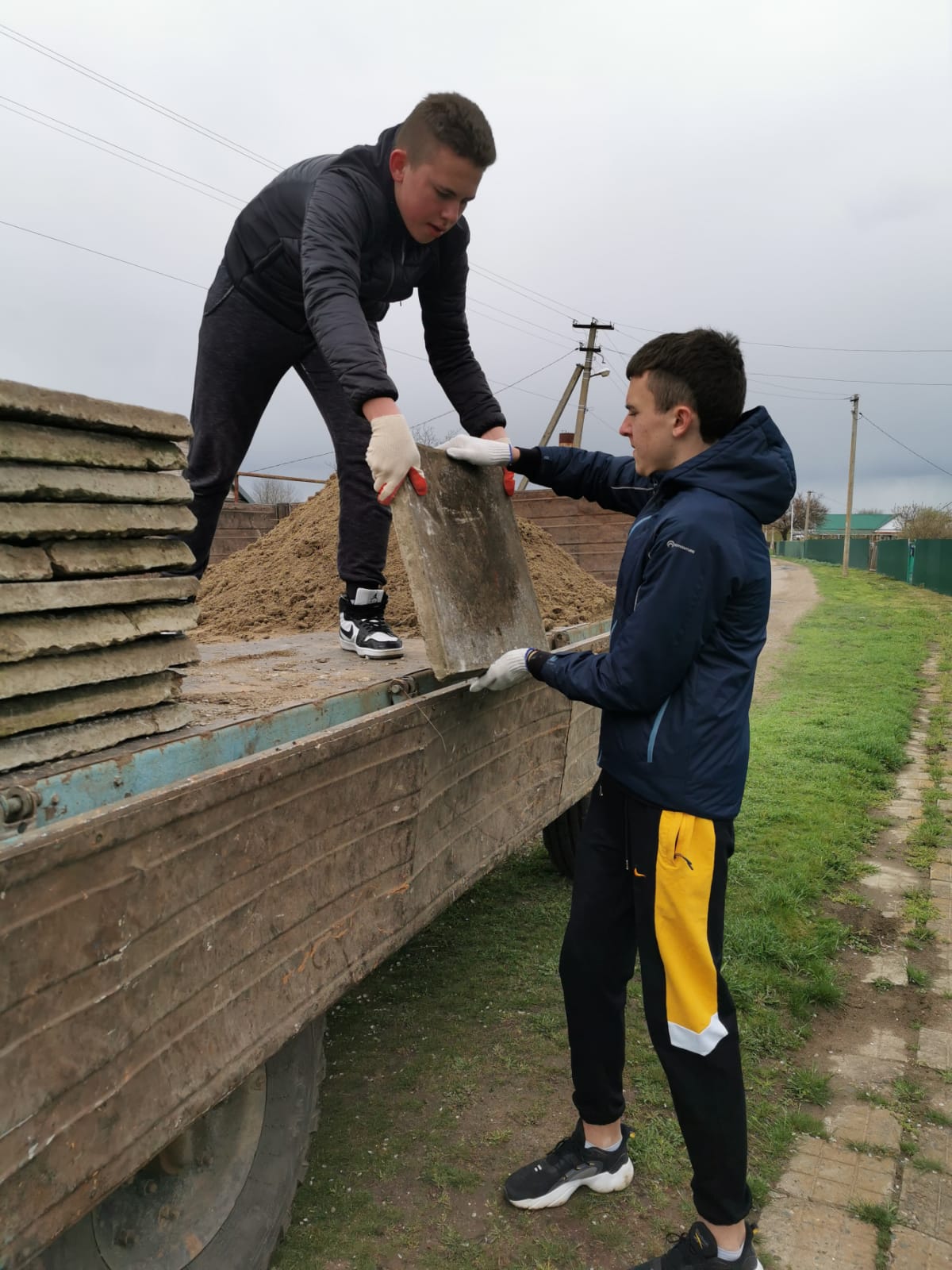 13 апреля по просьбе администрации Роговского сельского поселения мальчики волонтерского отряда «Вместе мы – сила!» помогли загрузить и выгрузить во дворе Марии Трофимовны тротуарную плитку. Нашлись мастера, которые готовы бесплатно уложить плитку, облагородив придомовую территорию бабушки Маши, но надо было совершить погрузку этой плитки, что юные добровольцы и сделали. Вместе с мужчинами, работниками администрации, мальчишки бодро взялись за трудное дело, каждая плитка имела определённый вес, а их было чуть более ста штук!